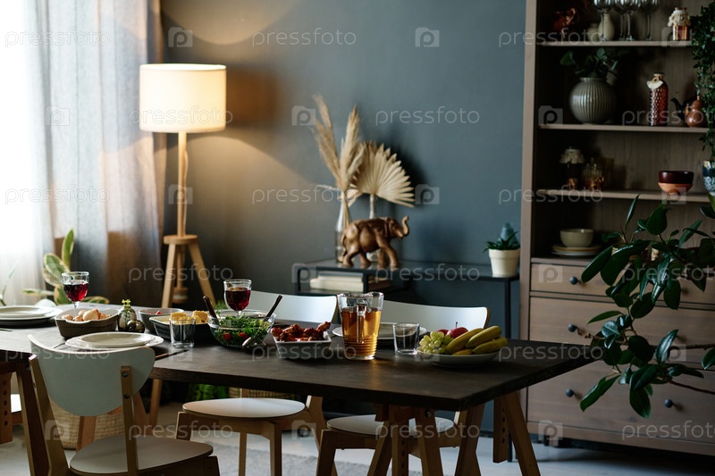Часть просторной гостиной с столом, на котором подают домашнюю еду