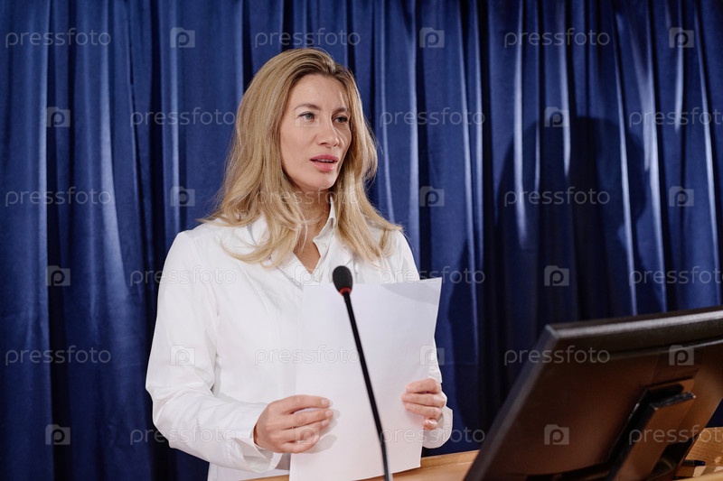 Доктор представляет свой доклад на конференции