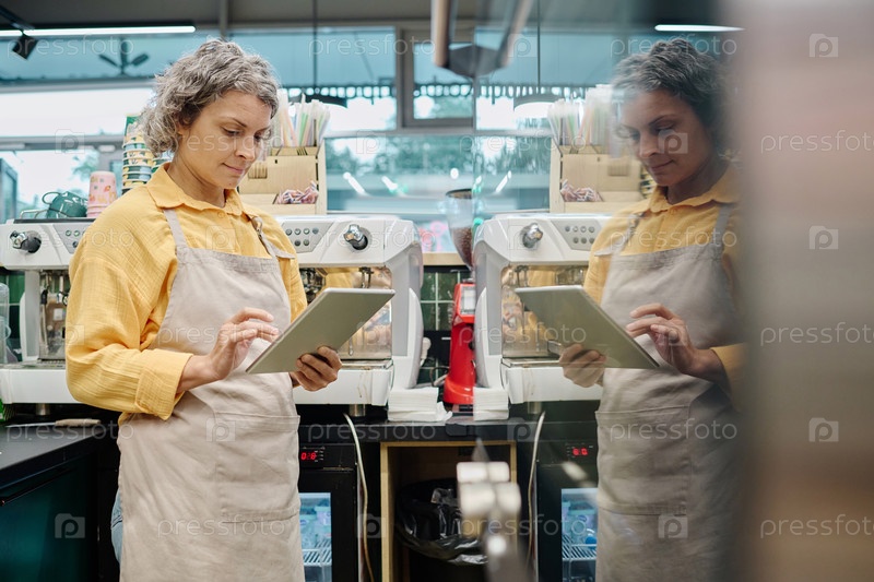 Продавец использует планшетный компьютер на работе