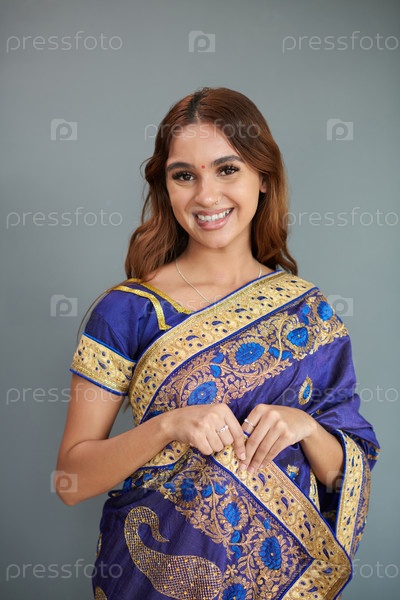 Женщина в индийском платье из сари