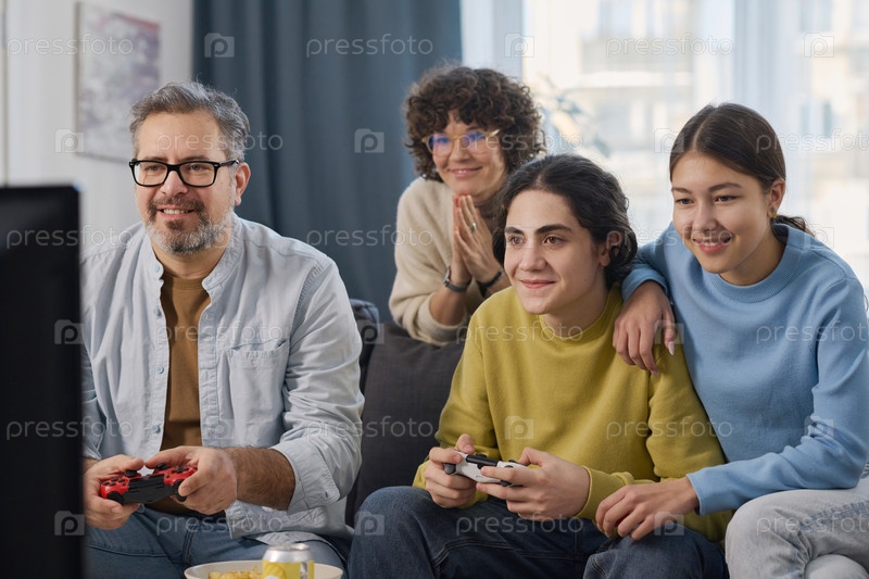 Семья играет в видеоигры вместе