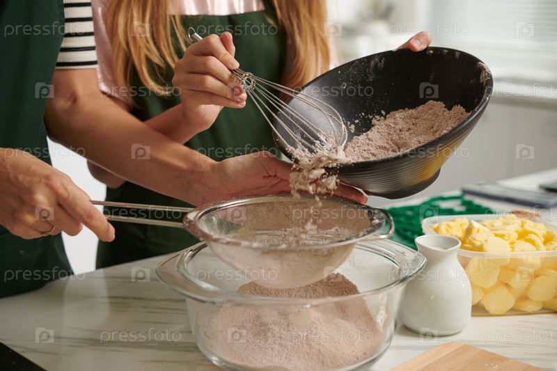 Ситовая муку и пряности в миску