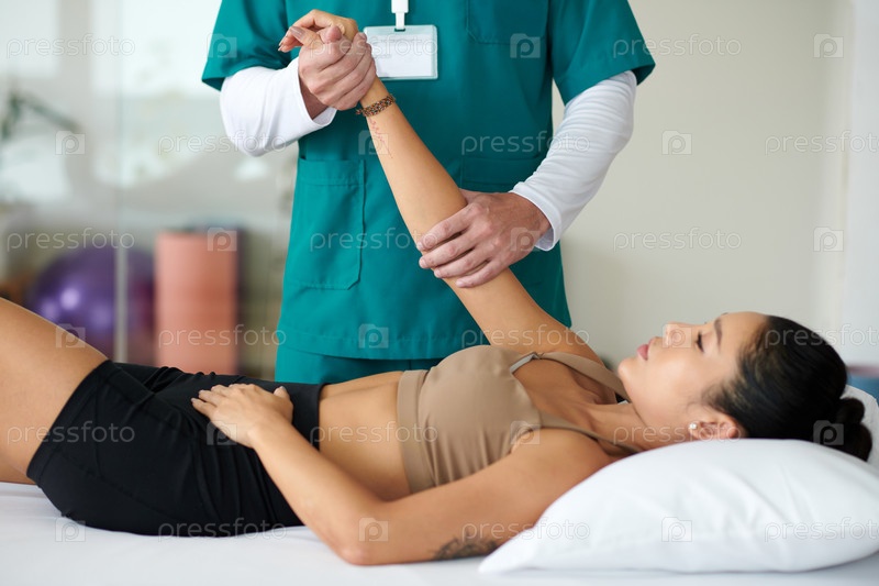 Физиотерапевт осматривает руку пациента