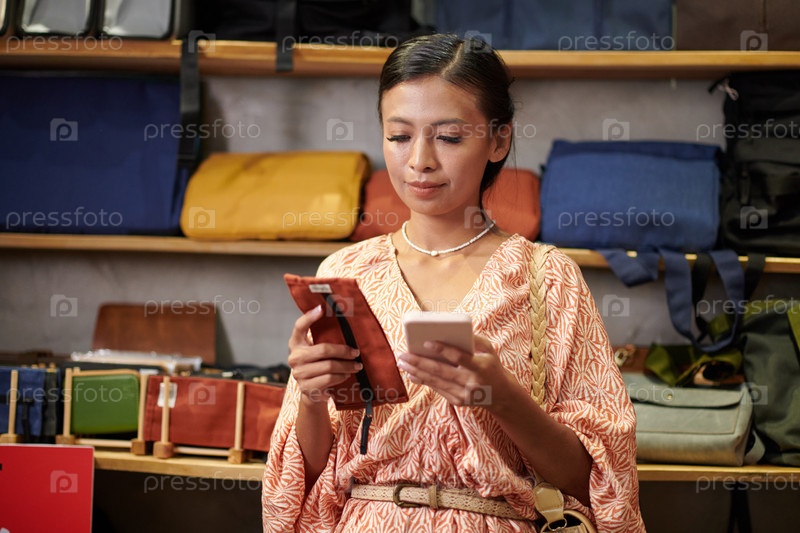 Женщина покупает чехол для смартфона