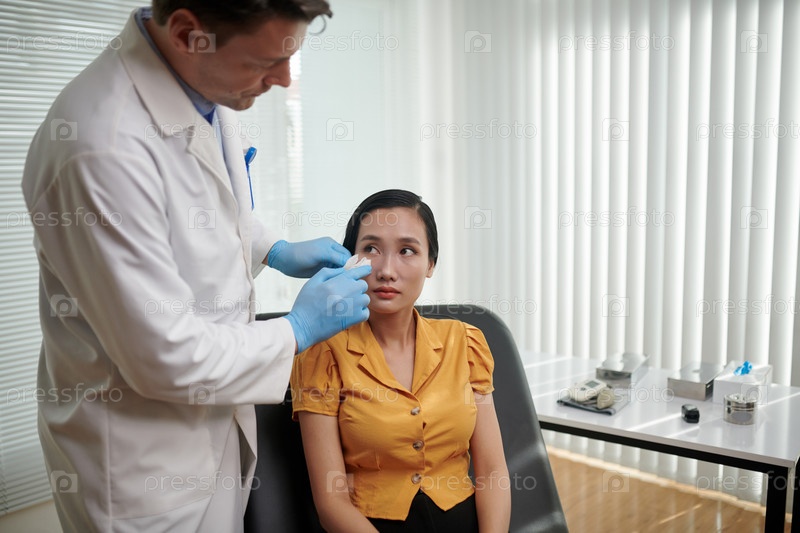 Хирург удаляет носовой пластырь