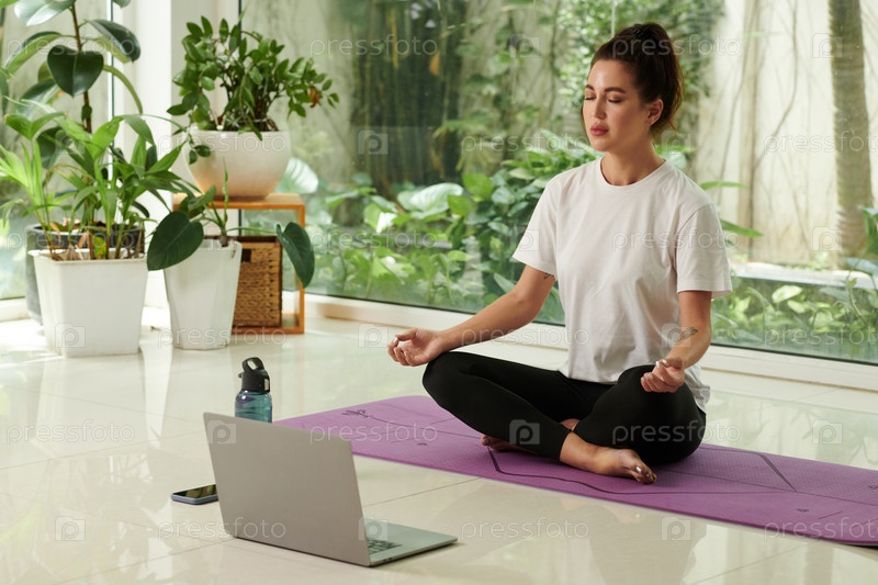 Женщина, медитирующая дома по утрам