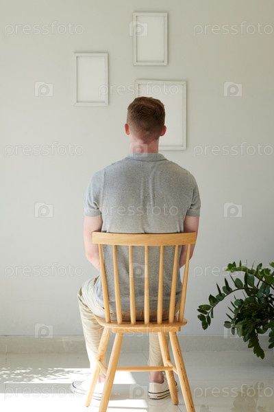 Человек смотрит на стену с пустыми рамками