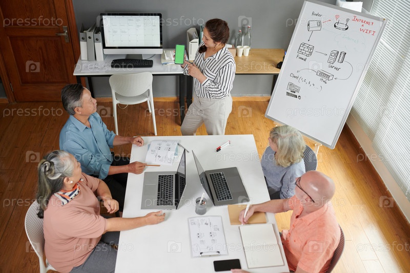 Учитель компьютерного класса показывает смартфон