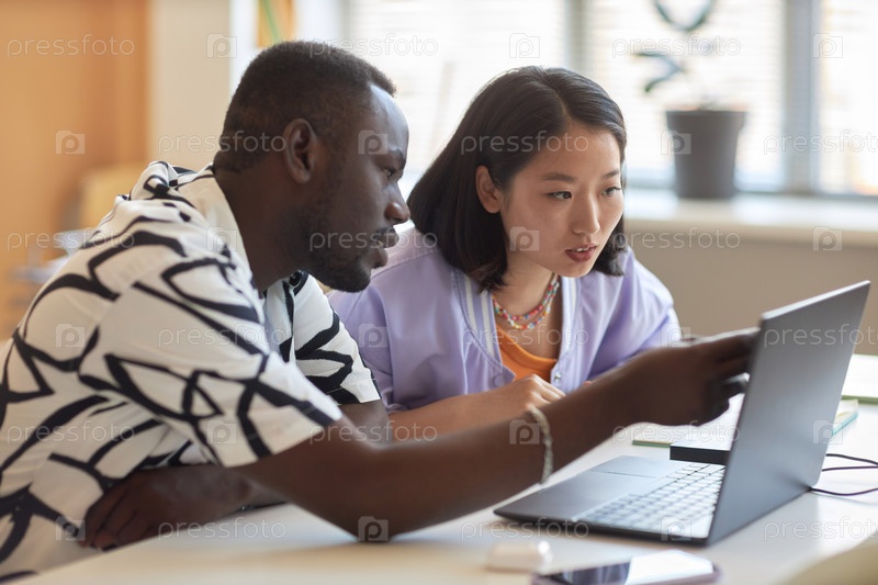 Уверенный в себе афроамериканский парень указывает на онлайн-данные на экране ноутбука