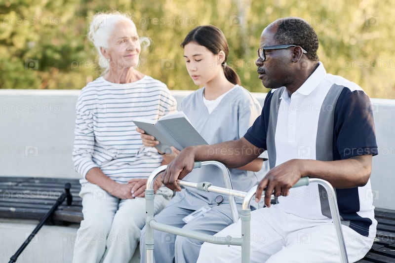 Опекун читает книгу для пожилых людей