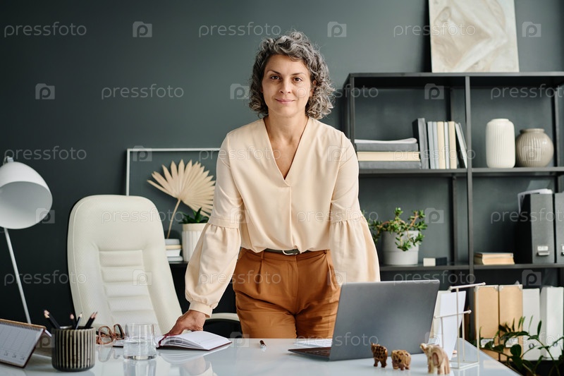 Счастливая зрелая женщина-работодатель, ожидающая новых претендентов на вакансии