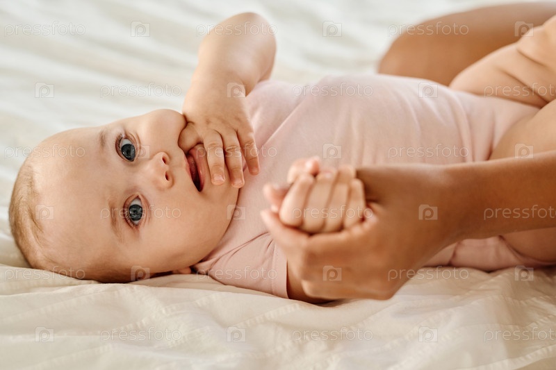 Милый ребенок играет со своей мамой