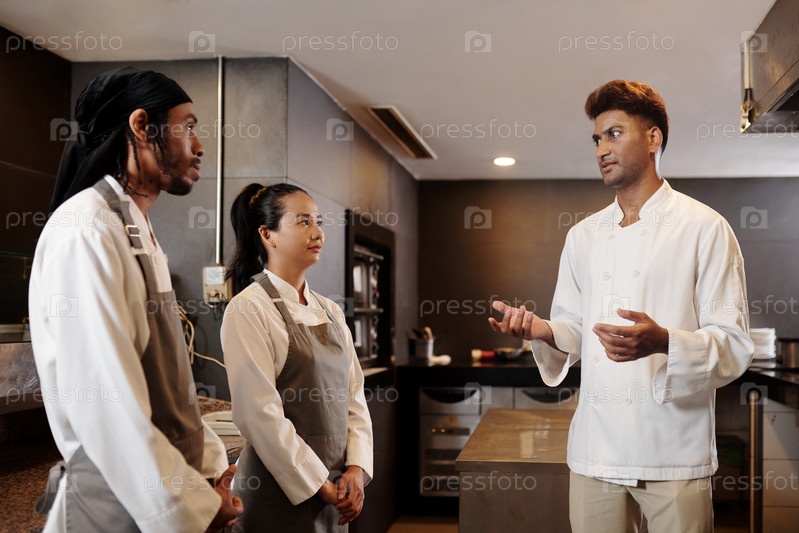 Шеф ресторана разговаривает с командой