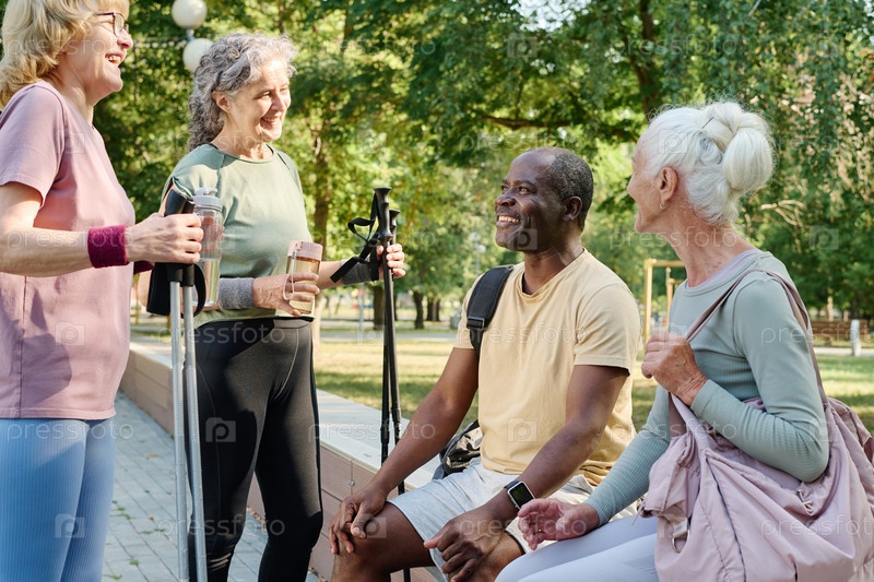 Пожилые люди встречаются в парке для спортивной тренировки