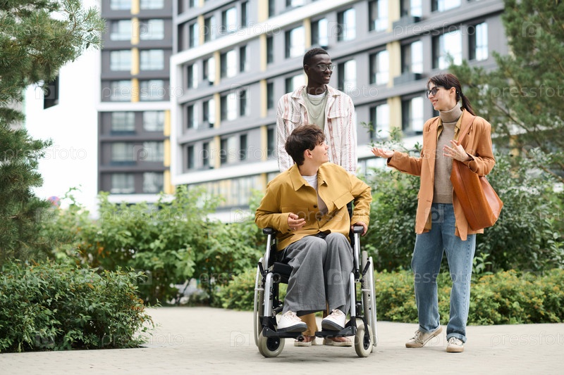Друзья вместе гуляют по городу