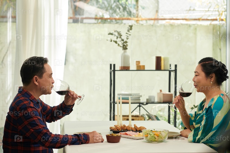 Пара пьет вино с ужином