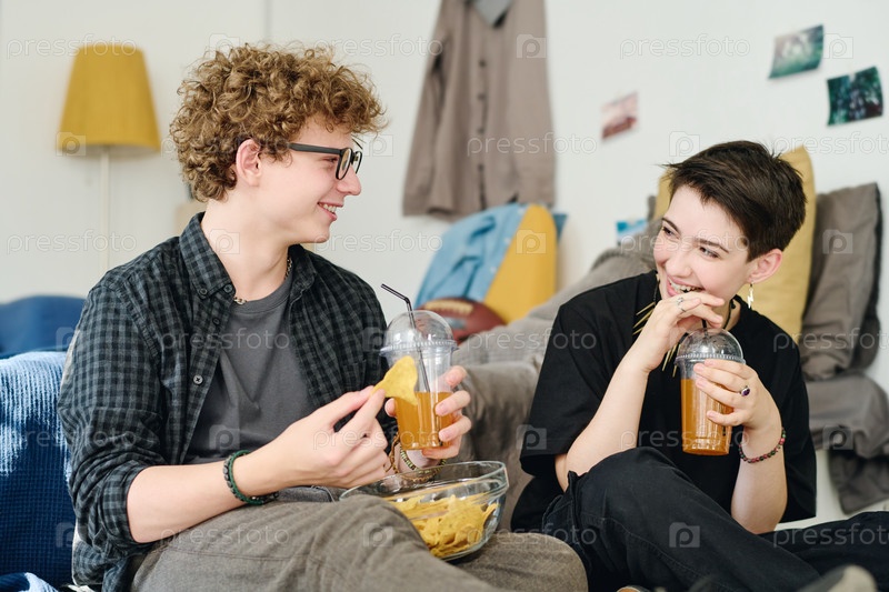 Два милых счастливых подростка, выпивая и обсуждая что-то