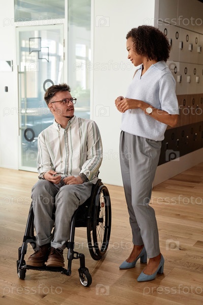 Коллеги разговаривают друг с другом в офисе