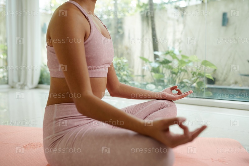 Спортсменка медитирует в положении лотоса