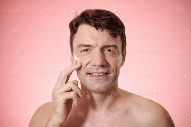 Мужчина, применяющий солнечный экран