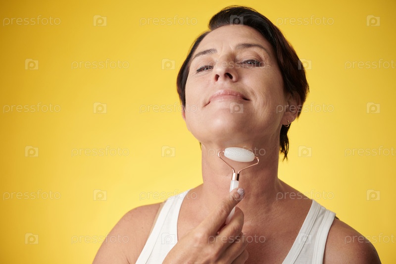 Зрелая женщина массажирует шею