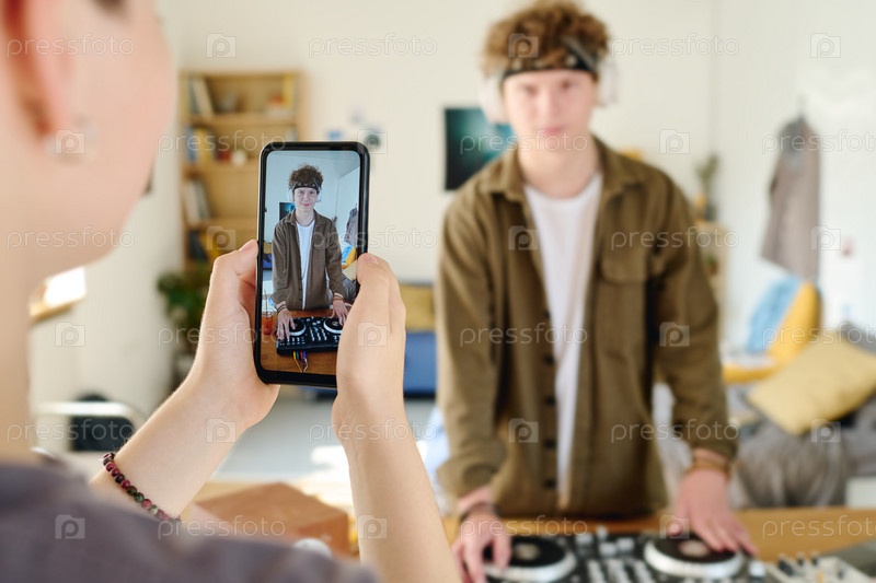 Сосредоточьтесь на руках девочки-подростка, держащей смартфон с парнем на экране