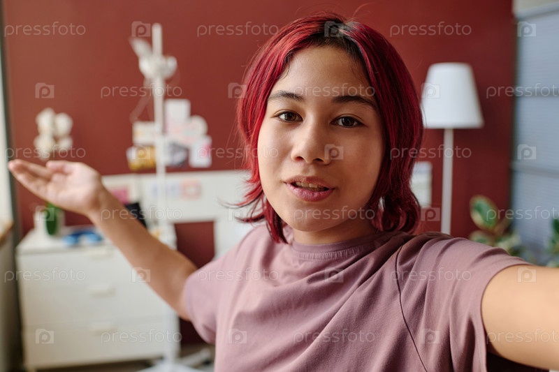 Красивая азиатская девочка-подросток описывает отделение больницы своим подписчикам