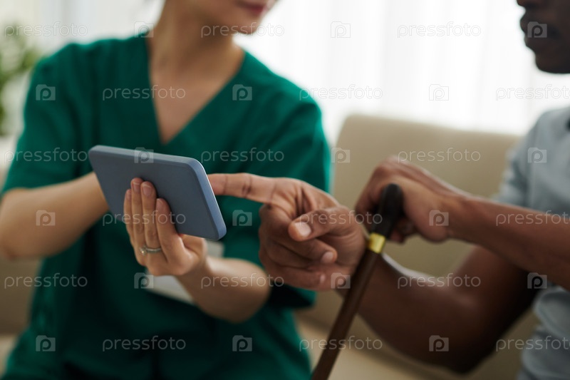 Медсестра показывает приложение телемедицины