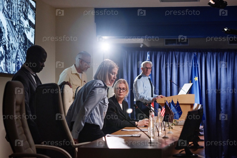 Люди обсуждают вопросы на конференции