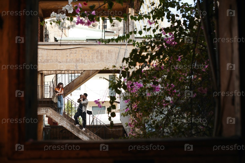 Молодой человек фотографирует девушку