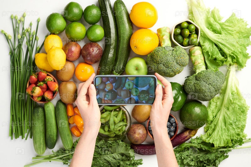 Человек, фотографирующий свежие продукты питания