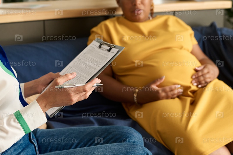 Социальный работник разговаривает с беременной женщиной
