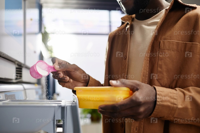Близкий план молодого афроамериканца с колпаком стирального порошка