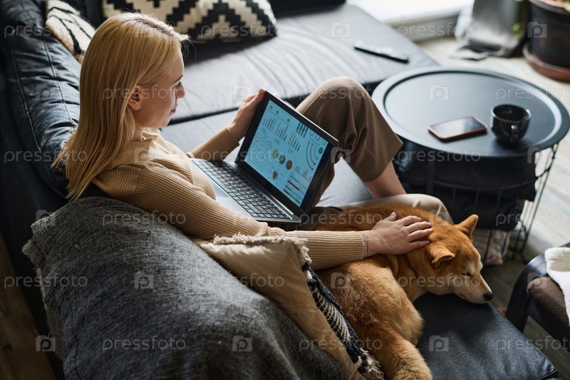 Молодая предпринимательница, работающая со статистикой удаленно