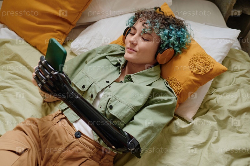 Женщина с протезированной рукой проверяет социальные сети