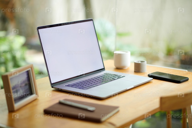 Ноутбук с белым экраном на рабочем столе