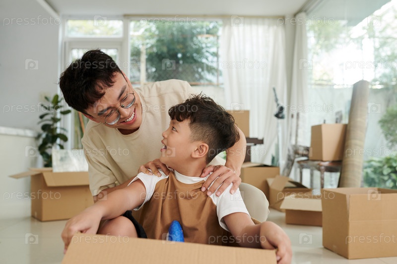 Отец и сын играют вместе
