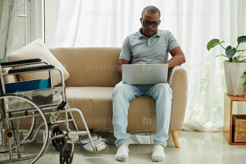 Человек с инвалидностью сидит на диване