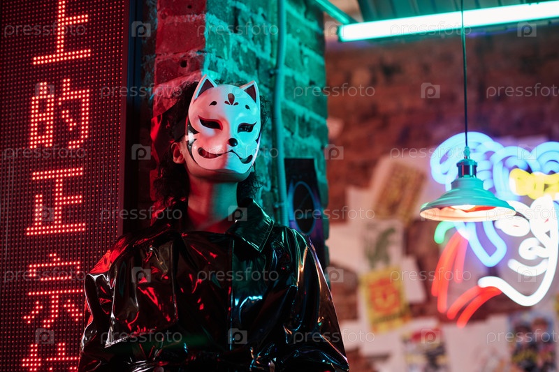 Лисица по углам кирпичной стены и иероглиф, означающий лучший рамен