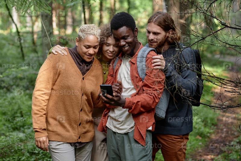 Друзья изучают онлайн-карту на смартфоне