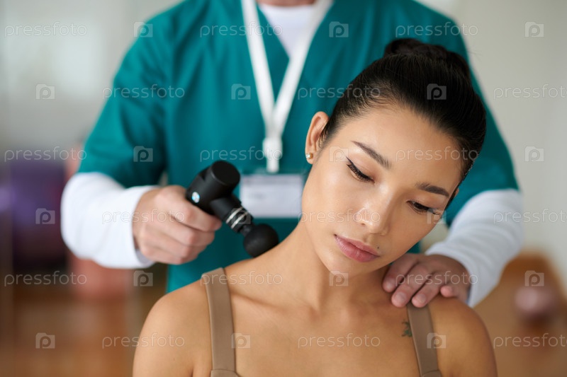 Терапевт, использующий массажный пистолет