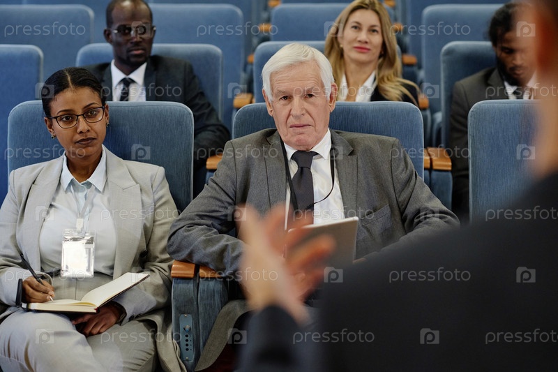 Бизнесмены, слушающие спикера на конференции