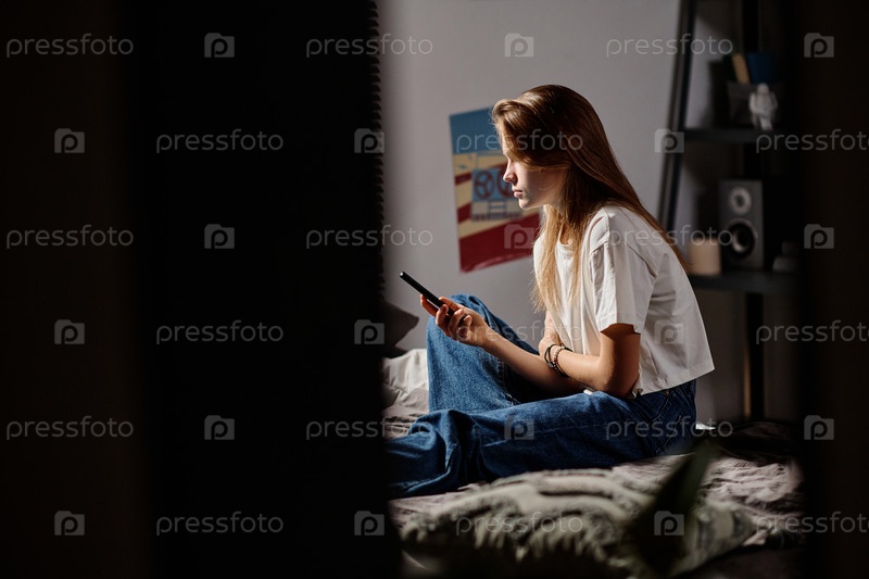 Несчастная девочка-подросток просматривает сообщения о киберзапугивании на мобильном телефоне