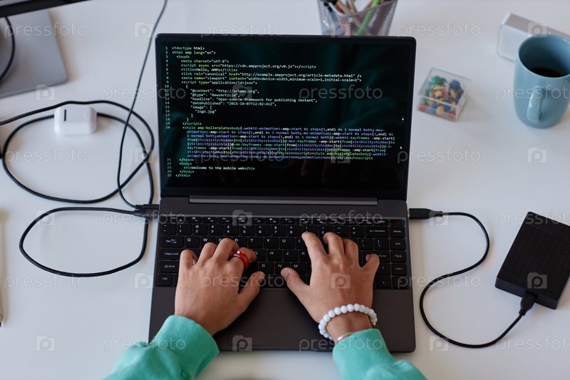 Женщина, пишущая компьютерные коды на ноутбуке