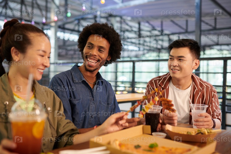 Молодые люди едят уличную еду