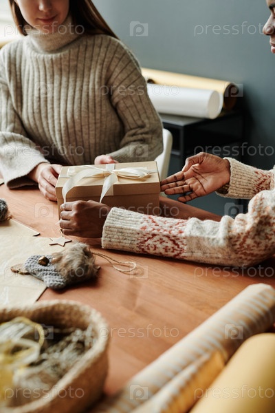 Молодая женщина передает подарок другу