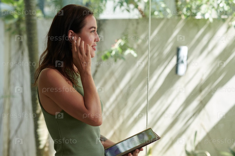 Женщина звонит коллеге по работе, чтобы обсудить презентацию