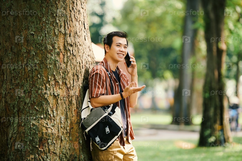 Улыбающийся мужчина разговаривает по телефону