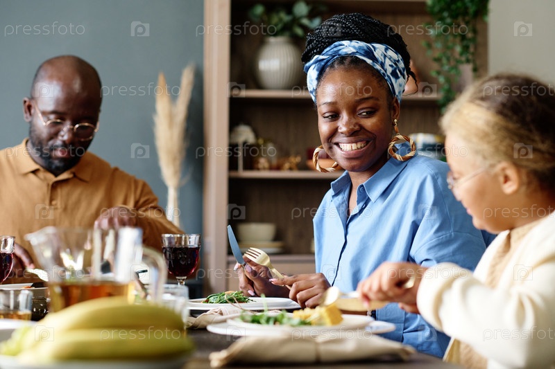 Сосредоточьтесь на счастливой молодой афроамериканской женщине, которая смотрит на свою дочь