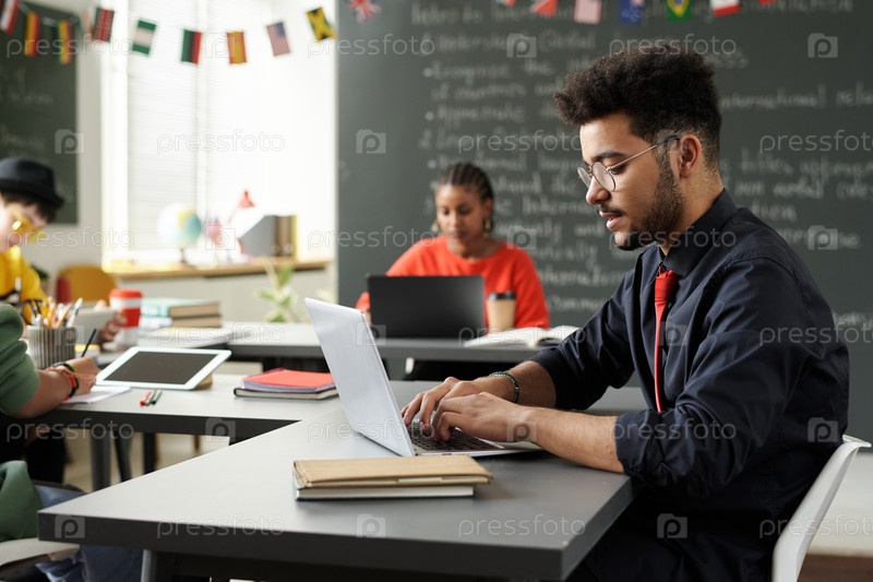 Студент, использующий ноутбук в классе